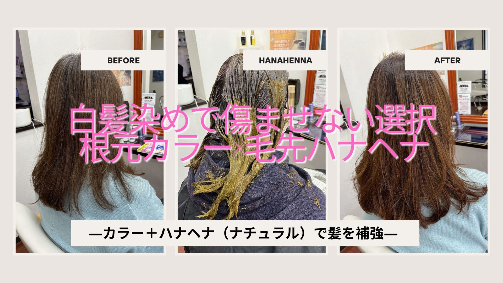 根元は白髪染め、毛先はハナヘナという施術設計